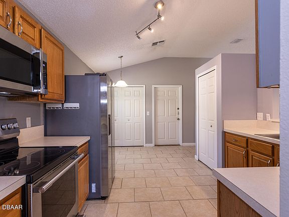 Looking for a quiet area? Great buy on cul-de-sac street with no drive through traffic. Spacious yard with extra room between the homes. Nice yard for the pets or little one to play. Located on the south side of Palm Coast with quick access to Ormond Beach and Daytona via US1. Short ride to all the restaurants, shops, and Fitzgerald Performing Arts, and the Town Center at SR 100. Tile floors in living area, kitchen and dining area and vaulted ceilings. Appliances and garage shelving included. Roof replaced in 2022, new heat and air system in 2024. This home is available for a quick sale. Some photos have been virtually staged