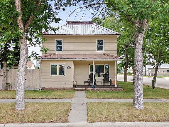 Beautiful two-story, traditional home located on a corner lot. Enjoy the charming covered porch and large foyer leading into the home. You'll be pleased to find an open layout with hardwood floors flowing from the living room to dining room and throughout the kitchen. Kitchen features ample cabinetry, counter-top and storage. Right off the kitchen the laundry is conveniently located. Rounding out the main floor is a bedroom with attached full bathroom. Heading to the second story, there are 3 large bedrooms and full bathroom. The basement is unfinished and makes for great storage or work area. There is potential for a second living room to be completed in the future. The three stall attached garage is split into two sections. The first section features two stalls with workbench and is insulated, sheet rocked, and heated while the second section has the third stall with wood burning fire place. The property includes a shed and partial fenced backyard with alley access. Don't miss your chance to own this charming home in rural ND. Westhope has many amenities to offer such as: K-12 school, Grocery Store, Bank, 9-Hole Golf Course and so much more! It is less than 60 miles from the Minot Air Force Base and 40 miles to Metigoshe State Park.