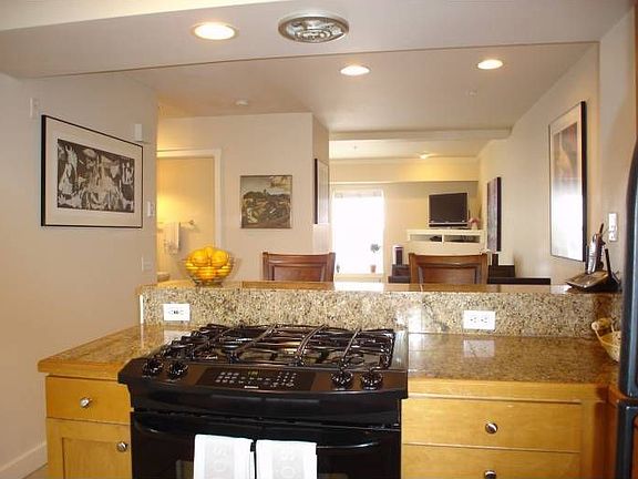 2 BR/Den/2.5 bath TH. Cherry & granite kitchen; gas range. Owner Suite w/4-pc bath & upper-level deck. Secure parking.