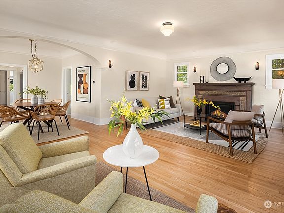 Modern, Seattle living meets quaint suburban charm at this timeless home situated in prime Madison Valley. Upon entering, you're invited by the primary living + dining areas, defined by arched ceilings and lead glass windows allowing light to pour in. Adjacent to the living room is a chef’s kitchen, equipped with tasteful appliances, earth-inspired finishes and ample counter space. Completing the main level are 2 beds + a full bath. Downstairs, the upgraded basement introduces two additional bedrooms and a bath. As you step outside, the impeccably tended backyard unlocks a world of possibilities for gatherings and entertaining. Boasting a highly sought-after floor plan, spacious backyard and unrivaled location, this home has it all.
