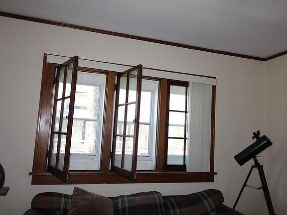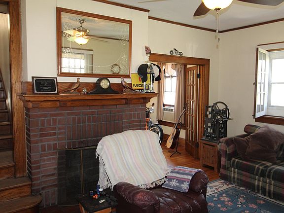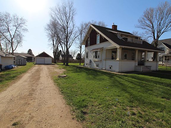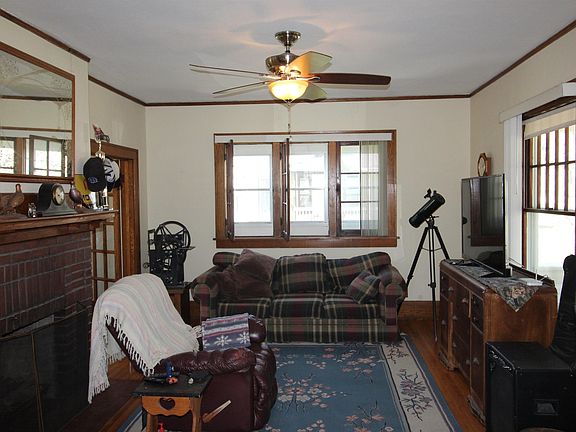 Beautiful home with lots of original features, hardwood floors throughout, built in cabinets and original doors and woodwork. Relax on your covered from porch with 2 porch swings. The main level has a small kitchen that leads to the dining room with refinished, built in hutch. The living room has a capped wood burning fireplace and leads into the den. The home has 3 beds upstairs with a bath with a clawfoot tub. The primary bedroom has access to a cozy covered patio. The basement has a full bath with a room finished for an office or craft room. The home sits on over a 1/3 of an acre with a detached 2 stall garage. Plenty of backyard space to enjoy with family and friends. Brant is less than a mile down the road for any outdoor adventures.