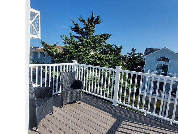 Beautiful 3 level home, recently renovated w/bay views. Located in Townsend Inlet, one of the highest elevation areas on the island. 3 large decks, all new w/composite decking. 4 BRs, 3 full baths. Contemporary Key West-style furnishings. Upgraded lighting, ceiling fans thruout. Spacious yard w/fence. Private OD shower. Single car garage. 1st floor entry & hallway features custom tile flooring. Like-new W/D. 1st floor BR has bunkbed w/full-queen lower/twin top, bamboo flooring, new mattresses, spacious closet. 2nd 1st floor queen BR has 3/4" hardwood flooring, new mattress, spacious closet. 1st floor bath has new sink/vanity, full bathtub/shower, custom tile wall. Main floor has travertine & 3/4" hardwood flooring thruout. 2nd floor queen BR has large closet, new mattress. It features a peaceful new composite deck with beautiful views. 2nd floor bath has upgraded vanity, full bathtub/shower, custom tile wall. Kitchen features like-new st-steel appliances: gas stove/oven, mwv, dishwasher, refrigerator/freezer. Granite-top middle island & countertops, new ceramic tile backsplash. Spacious dining area & greatroom, cozy gas fireplace, solid wood plantation shutters, new sectional couch. GR opens out to new composite front deck with bay views. 3rd floor spacious king master BR w/ beautiful new composite deck. Gorgeous bay views. Walk-in closet for clothing, storage as well. Master bath has porcelain shower w/bench, glass door. Tile floor, upgraded vanity w/ quartz top. Claude Hennis built. Make this your perfect getaway or year round dream home