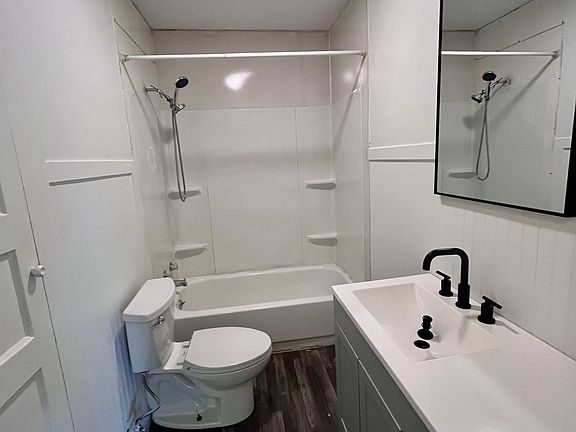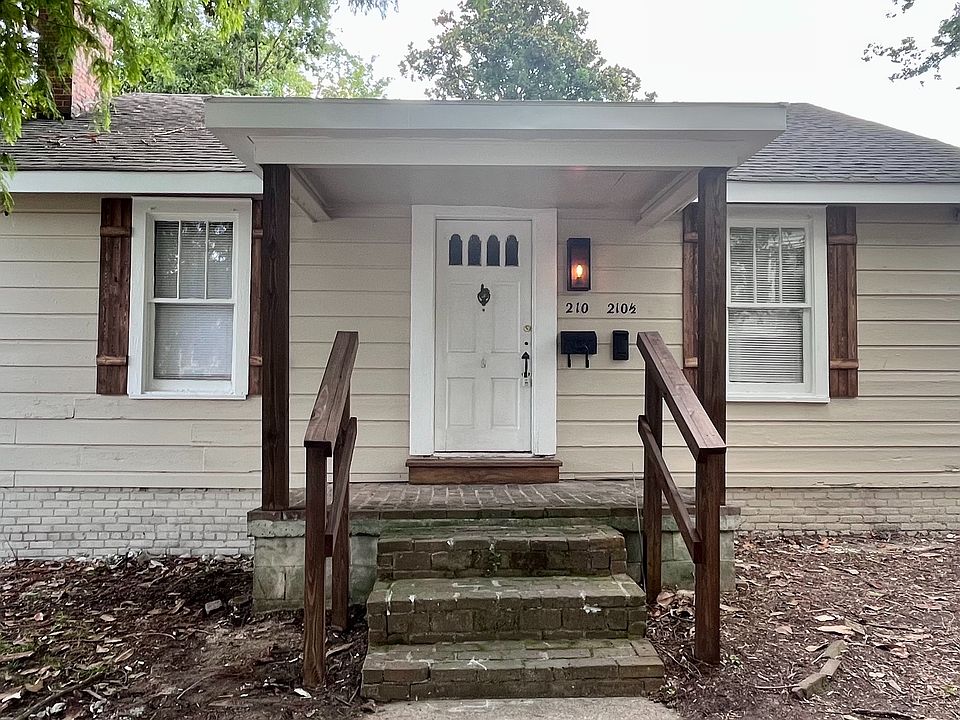 Welcome to 210 8th Street, Upstairs Unit a beautifully updated upstairs unit blending classic charm with modern touches in one of Columbus' most convenient locations. This expansive 3-bedroom, 1-bath apartment features rich hardwood floors throughout, fresh neutral paint, and updated lighting. The spacious living area is anchored by a bold navy accent wall with a decorative fireplace, while oversized windows allow for warm natural light. The kitchen area opens into a generous dining room and includes built-in shelving and laundry hookups nearby. Each bedroom offers ceiling fans and closet space, with one room featuring custom built-in shelvingperfect for a home office or creative space. The bathroom is freshly renovated with modern black hardware, a double vanity, and luxury vinyl plank flooring.Step out from the rear bedroom onto your private new wood deck, offering peaceful views of the shaded backyard framed by mature trees and blooming crepe myrtles. The shared front entry is well maintained, and the surrounding units, including nearby cottage-style homes, add to the quiet, tucked-away feel of this hidden gem. With off-street parking and just minutes from downtown, shopping, and schools, this unit offers style, space, and unbeatable convenience. Equal Housing Opportunity.