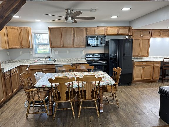 Peaceful country living on land totaling 1.1+- acres! This adorable 3-bedroom, 1-bath home has been beautifully converted to an open concept using stunning solid wood beams, adding warmth, character, and a true farmhouse feel. Recent updates include new drywall throughout, fresh interior paint, and brand-new electrical wiring. Major systems are already done for you! The roof, siding, HVAC split system with natural gas heat, and all new ductwork were replaced just 2 years ago. The home also features brand new double-pane, energy-efficient windows and doors, along with new insulation throughout the walls and ceilings for year-round comfort and efficiency. An additional back lot offers an RV hookups with water and electricity, making this property even more versatile and valuable. Plus, it comes with all kinds of furnishings! The living room furniture and bedroom furniture will stay! The practically new kitchen appliances as well as washer and dryer will also stay with the home. The seller is leaving new luxury vinyl plank flooring as well for the next owner to complete the finishing touches just the way they like. The metal siding exterior offers exceptional durability, low maintenance, and energy efficiency. Once outside you'll enjoy wide-open space with room for animals, gardens, or future expansion. RV water and electric hookups are convenient right along the driveway in the front as well as on the back lot—perfect for guests, travel lovers, or additional structures. Quiet rural setting with endless possibilities—this one is must-see. Seller is finishing up some paint on the trim. The China cabinet, and dining room table do not convey.