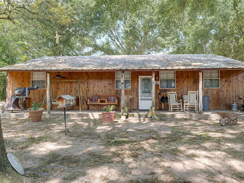 Dreaming of country living? Wake up your dreams have come true!! Well maintained 2 bedroom 1 & half bath home tucked away in rural East Texas on almost 20 acres. Enter into large open living/dining space separated from kitchen by custom cedar bar. Built in solid wooden desk and cabinetry provide ample storage and counter space to stretch your culinary muscles. Spacious bedrooms sit on opposite ends of the home each with their own bathroom for convenience & privacy. Oversized primary bedroom has a walk-in closet. Outdoors relax on front or back porches which span the full length of the house. Look out over ample fenced and cross fenced improved pasture, garden plat, fruit trees, and a pond. 30x60 workshop has a concrete slab, 4 roll up doors, plus double doors for easy accessibility. Full electric. Multiple storage buildings and barn for all your tools and toys.
