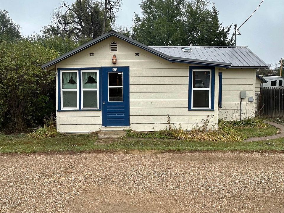 Charming small town home with big potential! Discover the possibilities with this 2-bedroom, 1-bath home in the quiet community of Vale. Offering 754 sqft of living space, this property is ready for your personal touch. Inside, you'll find a cute entryway leading into an open living area and kitchen, perfect for creating a cozy welcoming space. All appliances, including the less than 2 year old washer and dryer, stay with the home! The 14x26 converted garage is now a heated workspace with abundant storage, perfect for a large she-shed or man cave! There is a new 10x16 shed plus an additional storage shed just out the back door with a storm shelter below. Enjoy the spacious backyard with full privacy fencing, perfect for pets, play, or relaxing outdoors. Updates include new windows throughout, a new sewer line from the house to the road in 2019, full RV hookups including sewer, and new metal roofs on both the home and the converted garage. This property combines quiet living with easy access to the Northern Hills, Rapid City, and only minutes from enjoying the Sturgis Rally- an excellent opportunity for anyone looking for a quaint home in a peaceful setting.