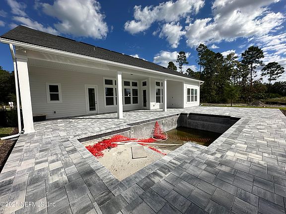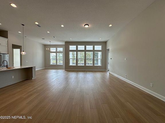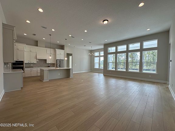 Indulge in refined living with this exquisite new construction POOL HOME by MasterCraft Builder Group, set within the exclusive, gated Hidden Creek enclave of John's Island in the no-CDD Silverleaf community. This one-story Southern Farmhouse masterpiece offers 4 spacious bedrooms, 4 luxurious baths, and a private pocket office plus flex room. Soaring 12' ceilings enhance the grand foyer, family room, and chef's kitchen—featuring all Electrolux appliances, soft-close and dovetail cabinetry, quartz countertops, and elegant gold designer fixtures. Entertain effortlessly on the expansive lanai or unwind in the sparkling pool, perfectly positioned on a premium corner homesite. Rich engineered hardwood floors flow through the main living areas, paired with a sophisticated neutral palette for a timeless, upscale ambiance. Every detail has been thoughtfully curated, and all high-end appliances convey—including refrigerator, washer, and dryer—delivering elevated comfort in every corner.