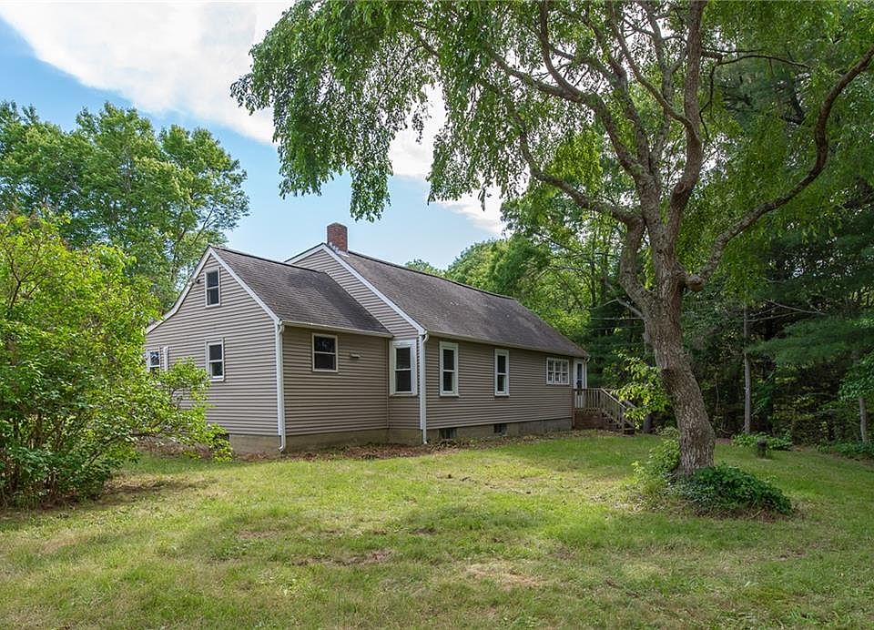 Potential abounds for this cape set on a large level lot abutting the Hopkinton Land Trust. the land trust has trails and extends to the Pawcatuck river. The lot is just under two acres surrounded by trees for privacy with plenty of room for gardens and entertaining. There is work to be done to make this three bedroom two bath home as charming as it can be, the result will be a lovely spacious home. Mini-split air and heat pump will keep it comfortable. Siding, roof, updated windows make an easy to maintain exterior. The interior is ready for someone to make it their own. The kitchen, dining area and living room are open to each other with a laundry room just off the dining area. There is a bedroom and full bath on the first floor, two bedrooms and a full bath on the second floor. This is an estate sale, there are no disclosures, property to be sold as-is.