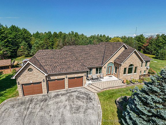 Magnificent 50 Acre Corner Parcel 4 Minutes East of Mount Albert. Spectacular Private Hilltop Setting With 2 Gated Driveways. This Beautifully Appointed & Spacious Bungalow Is Impressively & Extensively Renovated. The Home Overlooks A Private, Resort Inspired Pool/Patio (2020) With A Backdrop Of Sweeping Lawn Areas & Forest With Stream. Quality Constructed And Featuring An Open Concept Light Filled Interior With Lofty Ceilings, Wonderful Views and Many Custom Features Like The Luxurious Primary Ensuite. The Spacious Front Entry Has An Inviting Open Staircase To Well Executed Lower Level Suited To Separate Quarters Boasting A Bathroom, Picture Windows, Separate Access To The Garage Plus A Rear Walk-Out To Ground Level. Turn-Key Condition Inside And Out. Park Your R/V (With Full Power & Sewer Hookup) In The Industrial Style Shop Which Is A Car Enthusiast's /Trade Person's Dream! Lots Of Scope With A Rare & Incredible Package Such As This!! 400 Amp Hydro Service, Shop 64`x34`(14`Ceiling) With Separate Gated Driveway and Regrind Asphalt Parking Area, Office , Washroom, InsulatedPropane Heat. 20x35 Shelter With Concrete Floor, Updated Insulation, Heating Systems, Kitchen, Baths.
