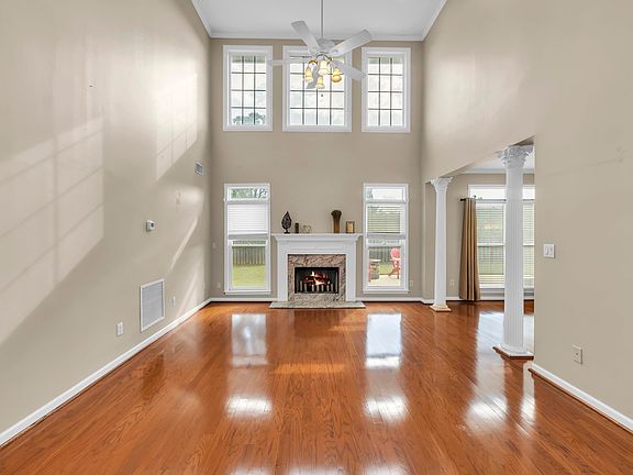 Beautiful all-brick home on a quiet cul-de-sac street. The great room features hardwood floors, a vaulted ceiling with a bank of windows that provide lots of natural light and opens to the dining room with its stylish columns, hardwood floors, and double windows. The kitchen includes a spacious breakfast bar, granite countertops, tiled flooring, stainless steel appliances, a pantry, and an eat-in area with a double window. The master suite has a bump-out area with a bay window offering an ideal place for reading or relaxing. The adjoining bath includes a jetted tub, walk-in shower, double sink vanity and walk-in closet. There is also a powder room and laundry on the main level. Upstairs are 2 spacious bedrooms, a full bath plus a large bonus room. There's also a smaller room that could be used for crafts or storage. The home has both a covered and open patio, a flat fenced backyard, walk-out attic storage plus a 2-car garage. Convenient location and close to everything!