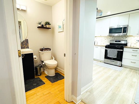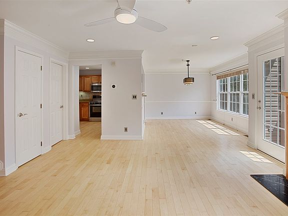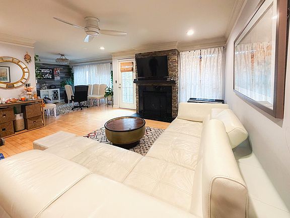 Additional highlights include gleaming hardwood floors, accent wall in living room, dual-mode accent lighting in the kitchen, living room, bedrooms, and bathrooms, ceiling fans in the living and primary bedrooms, ample closet and storage space throughout, a two-level Nest thermostat, attached one-car garage with built-in shelving, an extra storage room, a private driveway and an EV charging 240V outlet, perfect for electric vehicle owners.