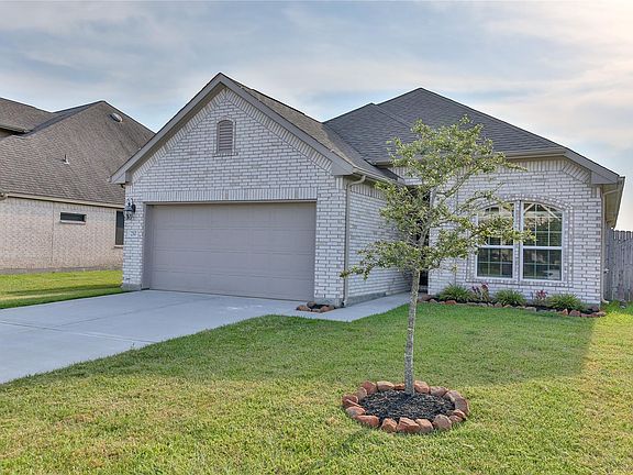 This home offers a split floor plan with a private primary suite including a walk-in closet, dual under-mount sinks, soaking tub, and separate shower. One full bathroom serves the secondary bedrooms, featuring an under-mount sink and tub/shower combo. Additional highlights include crown molding throughout, ceiling fans in every room, hurricane clips and shutters, and gutters all around the home.