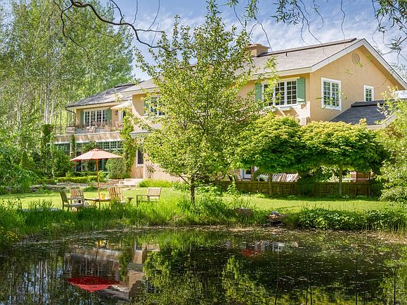 This gorgeous five-acre waterfront estate property exceeds all expectations. Enjoy country living with complete privacy, while still being close to town, fifteen minutes to the Sun Valley ski resort, and only steps away from the Big Wood River. The custom designed, sophisticated home was completely remodeled in 2012 and features tasteful high-end finishes and fixtures. The gourmet kitchen features new, top-of-the-line stainless steel appliances and double ovens. In the master suite, the his and hers bathroom features gorgeous Carrera marble, large luxurious bathtub, and a glass walk-in shower. The home also features a den, office, sitting room, sunroom, two laundry rooms, and a bonus room that could be converted into a guest apartment. Horses are allowed, and this property is beautifully landscaped with plenty of outdoor patio space for entertaining. For buyers shopping for a luxurious home with all the bells and whistles you will not find a better value.