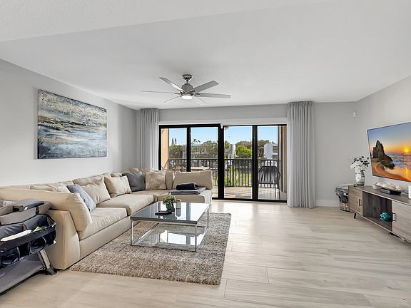 Fabulously Renovated Rental with Serene Water Views! Tucked away in an amenity-rich and guard-gated community just moments from the beach and restaurants, this 2BR/2.5BA, 1,512sqft rental townhome satisfies contemporary needs with a plethora of desirable features. Completely remodeled to interior design perfection, the entertainment-friendly residence welcomes with gorgeous Italian porcelain tile floors, recessed lighting, modern paint hues, ultra-chic furnishings, an organically flowing layout, and a spacious living room boasting sliding glass doors to the covered balcony. Stunning views of the intracoastal waterway may be admired year-round from this private outdoor space. Enjoy the culinary arts in the reimagined gourmet kitchen, which has stainless-steel appliances, quartz countertops, white shaker cabinets,