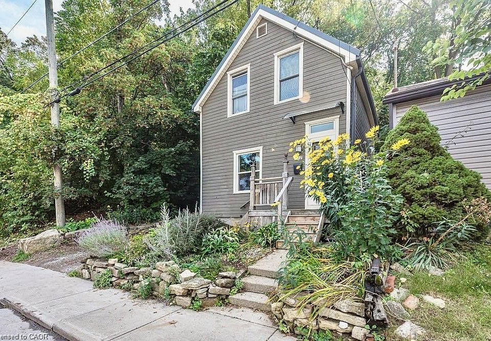 Outstanding transformation inside & out with no stone left unturned! Tucked away at the base of the escarpment, this thoughtfully renovated 2-storey, 2-bedroom, 1-bath home is full of character, creativity, and modern convenience. From its clever storage solutions to its private “secret garden” patio, every detail has been carefully designed to make the most of both space and style. Step inside to discover an updated kitchen that’s as functional as it is beautiful, featuring built-in banquette seating with custom cushions (and hidden storage!), a pull-out butcher block for added prep space, subway tile backsplash, and generous cabinetry. The living room offers a walkout to a stunning interlock and flagstone patio — a private oasis perfect for morning coffee or evening gatherings — w/ built-ins & glass display shelves to add ambiance and charm. Upstairs, the primary bedroom delights with a hidden “secret closet” concealed behind a bookshelf, while the elegant 4-piece bathroom features a classic clawfoot tub and pedestal sink for a touch of vintage luxury. Additional highlights include two-car private parking — a rare and valuable find — and a unique sense of privacy and tranquility. This one-of-a-kind home offers the perfect blend of historic charm, smart updates, and whimsical details. This Corktown gem is steps to St. Jo’s, the GO & amenities. A must-see for those seeking something truly special.