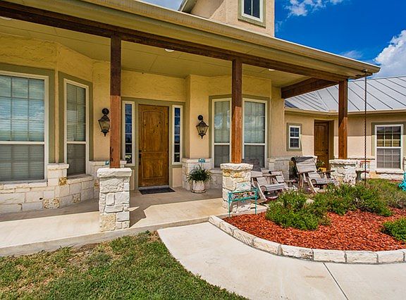 Beautiful Custom 4 bedroom 3 bath Hill Country home located on 2.5 acres. As you enter your eyes are marveled at the stained concrete floors and tall ceilings. The gourmet kitchen opens to the large great room and is perfect for large family gatherings and entertaining. From the great room you enter one wing of bedrooms, including the large and spacious master. The master bath is very thought out with double vanities, jetted tub and walk in shower. After you are taken away by the inside of this home, you will venture to the back patio and enjoy the outdoors. The level spacious backyard is perfect for parties or gatherings of any size. Also, just off of the patio is a 24x24 heated and cooled building that has endless possibilities, media room, home gym, man cave, etc.