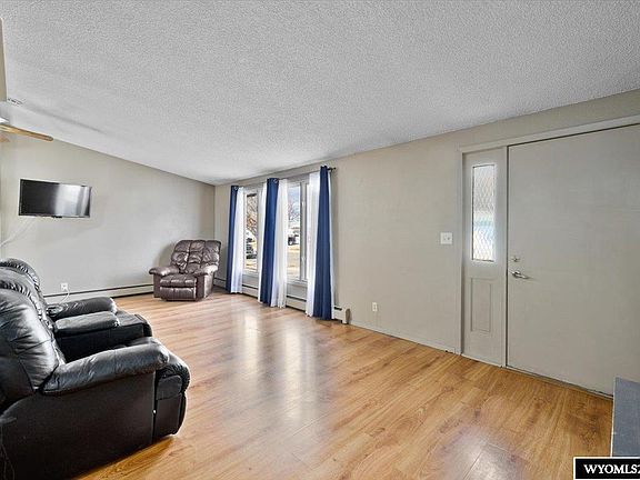 This spacious 5 bedroom, 3 bathroom property is set on a large corner lot with RV parking and has a NEW roof and gutters! Featuring an oversized 2-car garage and a covered patio, this home is designed for both convenience and entertaining. Inside, the main level offers a vaulted-ceiling living room that fills with natural light and a potential main floor laundry option for added flexibility! The primary suite includes its own en-suite bathroom, while two additional bathrooms have been updated with stylish tile finishes. The lower-level family room is the perfect gathering space, highlighted by a cozy pellet stove and a beautiful mountain-peak wood accent wall. With its generous lot, ample parking, and comfortable living spaces, this home combines function and charm—ready to welcome its next owner. Call/Text The Michael Houck Real Estate Team today, 307.462.2622