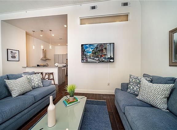 Stylish condo in the heart of the French Quarter...charming old-world feel with modern upgrades. Spacious rooms and loads of natural light...HUGE WINDOWS! Stone countertops with waterfall edge and top-line appliances. Secured entrance with elevator access. Literally across from House of Blues with all the music, food and shopping of the French Quarter at your doorstep. CAN BE LEASED FULLY FURNISHED FOR AN ADDITIONAL $200 MONTHLY. Please note that furniture provided may not be exactly the same as that shown in photos.
