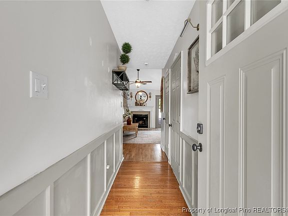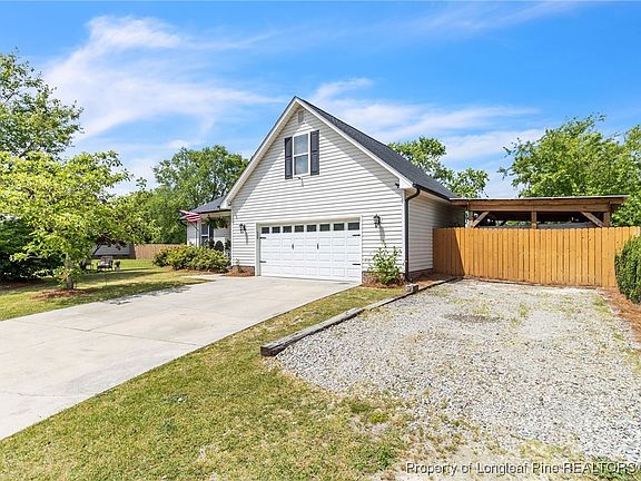 This beautifully updated 3BR/2BA home w/bonus room in Raeford is packed with charm and thoughtful upgrades. From the moment you walk in, you're greeted with warm, curated design—board and batten entry, gorgeous LVP flooring, and designer lighting throughout. The kitchen stuns with a farmhouse sink, stainless appliances, and modern fixtures. New carpet just installed in the bedrooms (2025) and the hall bath was fully refreshed in 2022 with updated flooring, fixtures, and faucet. Enjoy outdoor living with a fully fenced backyard, above ground pool, 3 sheds, covered gazebo on a concrete pad, and a dreamy front porch perfect for morning coffee. Double garage w/mini-split added in 2024, new upstairs AC unit (2024). Outdoor floodlights, app controlled lighting for convenience, and Vivint security system. Every finish feels intentional and elevated—this home is truly move-in ready and has been beautifully maintained inside and out.