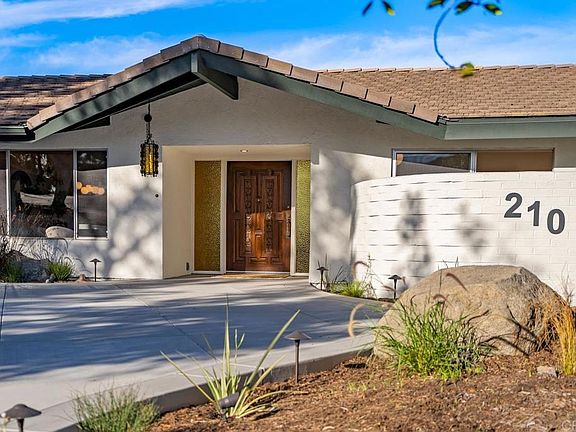 MCM LOVE.. ATTENTION.. DETAIL... This is NOT the "flip" you are used to seeing.. Welcome to your dream Mid-Century Modern retreat located at 210 Dewitt Court in the highly coveted Horizon Hills community, east of Mt. Helix. Believed to be originally designed by the renowned John Mortenson and architect James E. Hurley, this exquisite home offers a perfect blend of restored timeless architectural elegance and modern updates. Spanning 2,960 square feet, this single-level home features an expansive open floor plan with 4 bedrooms and 2.5 bathrooms. The potential for Mills Act designation presents an exciting opportunity for significant tax savings, ranging from 20% to 70% on average. Step inside to discover new cork flooring throughout, complementing the home's original, unique design elements. The roof and HVAC system are approximately 2 years old, ensuring comfort and peace of mind. The recently landscaped grounds include a new driveway, drains, sprinklers, and drips, enhancing the home's curb appeal. The kitchen is a delightful blend of new and classic, featuring new appliances alongside refreshed original cabinets and impeccably preserved vintage countertops. The primary bath retains its original tile, maintaining the home's authentic charm. This home embraces the hallmark features of Mid-Century design, with a wide-angled roof, broad sweeping eaves, and expansive glass walls that stretch from floor to vaulted ceiling. Enjoy breathtaking views of the surrounding mountains and hills from the comfort of your private outdoor space. Additional amenities include air conditioning, an attached garage and driveway allowing for parking of at least 4 cars, and laundry hookups in the home. Experience the perfect harmony of modern convenience and classic design in this remarkable restored Mid-Century Modern home.