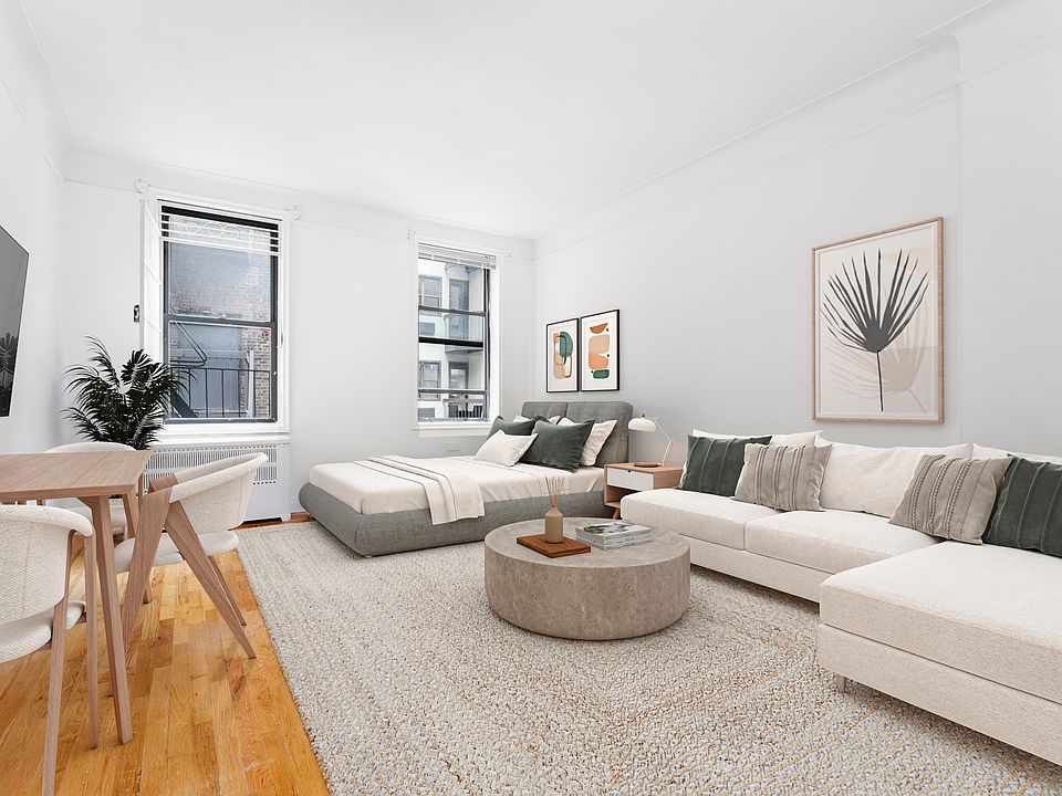 This home offers everything you could need with a separate kitchen, a dressing area, hardwood flooring, great closet space, and plenty of living and sleeping room to make yourself comfortable even if you're working from home. Not to mention it's located in an elevator building with laundry and a live-in super.