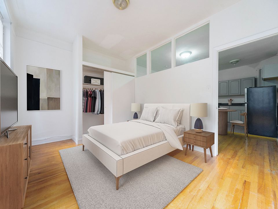 This charming 1 bed/1 bath features everything you could need - hardwood flooring, a separate kitchen with stainless steel appliances and a large living area. This home boasts ample storage space with three closets! The queen sized bedroom gets lots of natural light.
