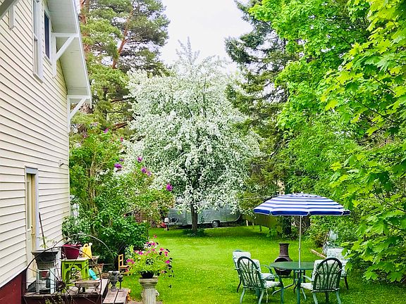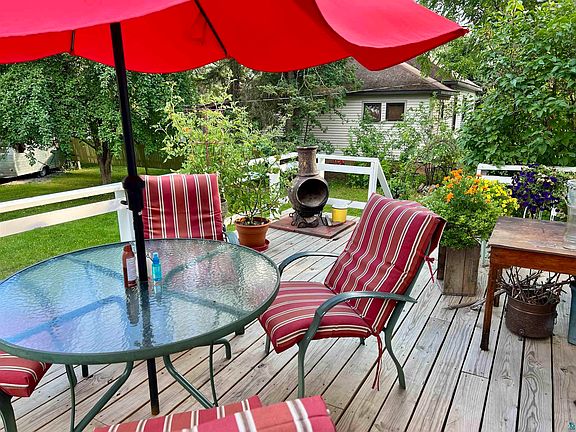 Beautiful three bed, two bath Craftsman style home with a large lot, a great covered porch, and a big sunny deck! The main floor features a sweet living rm with a wood burning fireplace, and a spacious kitchen and dining area. Upstairs there are two bedrms and one bathrm. The third bedrm (12'x21.5' with in-floor heat) and a second bathrm is in the basement, along with laundry and a utility/storage area. The yard comes alive in the spring and summer with perenial gardens, pink crab apple blooms, white blooms and fruit on the apple tree, multi colors of lilacs, and a rose bush. The leaves fill in and the back yard is a haven for relaxation.