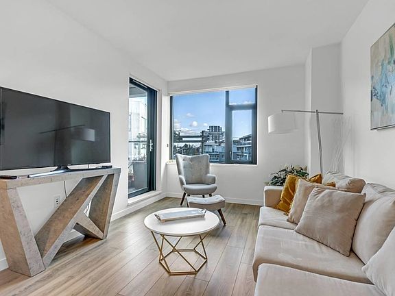 ELENORE BY CHARD Live in Mount Pleasant's premier luxury residence! Available October 1, this furnished 1 bed/1 bath home offers 582 sq.ft. of efficient living with sleek finishes and A/C. The open layout features large windows, a modern kitchen with stainless steel appliances, and seamless flow into the living area. The bedroom offers ample closet space while the bathroom is tastefully designed. Enjoy in-suite laundry, 1 secured parking (no storage), and access to amenities including gym, bike room, elevators, and visitor parking. Pets allowed with a minimum 1-year lease. Ideally located just steps to False Creek, transit, shopping, dining, and vibrant attractions, this boutique residence combines comfort, style, and convenience in the heart of the city.