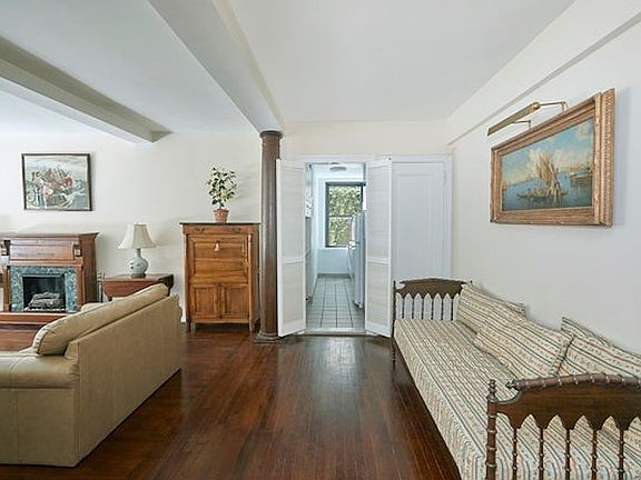 Townhouse living in a pre-war building. Welcome to apartment 1E, a lovely, quiet high first floor apartment overlooking a beautifully planted garden. This apartment has the unique convenience of being on the lobby level and one flight above the street. Windows are at second floor level.