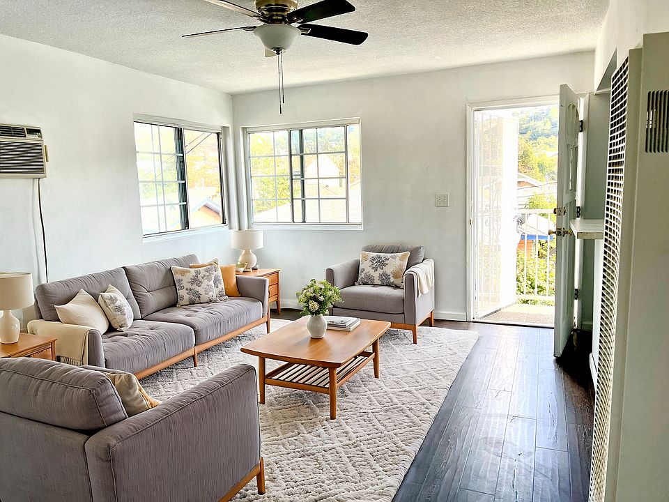The best kept secret in LA! This beautiful 2-bedroom, 1-bath apartment on the top floor of a duplex gives you incredible views of the surrounding hills, a large kitchen and living room for entertaining, a huge outdoor space, a quiet refuge set back from the street, and a walkable neighborhood you'll fall in love with that's conveniently located. Shared, free laundry room and lots of storage. Apartment will be delivered unfurnished. 5 minutes from Cypress Park, 5 minutes from Highland Park, 10 minutes from Echo Park, and so much more--this is the most central location in Northeast LA. Right outside your door is an up-and-coming neighborhood--hang out at the Lummis House across the street, grab tacos at El Atacor, rent a movie at Videotheque (over 10,000 titles!), literally walk to Ernest Debs Park (the best park in LA)! Pop to the metro and you're two stops from Chinatown, three stops from the arts district--never wrestle with parking again! This area has what Echo Park and Silverlake have long lost, and we're determined to keep rent affordable here and to house people who want to invest in their neighborhood, get to know their neighbors (we love them), and appreciate this magical pocket in the big city for all it has to offer. The apartment has been recently updated with new floors and all brand new appliances, A/C and heating. Rent here comes with 1 free parking spot, and street parking is easy for additional vehicles. Not too close to the 110, but close enough to make a super quick trip to Echo Park, downtown, and beyond (not to mention the Arroyo Seco bike path which runs from the house all the way to the mountains.) Owner pays for water. We love animals! Up to two pets allowed total, fully enclosed yard is great for dogs.