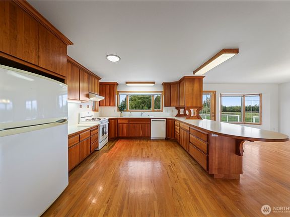 Set on 1.5 acres in a desirable mid-county location, this 3bd, 2.5 ba home features 2,150 sqft of single-level living with 2100 sqft unfinished basement. The open-concept design flows seamlessly to a spacious deck with peaceful territorial & mountain views. Inside, the kitchen offers custom maple cabinets & generous counter space. Skylights & large windows flood the home with natural light, highlighting the hardwood floors & custom cabinetry found throughout. The over-sized attached 2-car garage plus a 26' x 32' heated shop w/ bathroom, provide ample space for storage, projects & hobbies. Outside features mature fruit trees, raised garden bed & chicken coop. Located in the Meridian School District, just minutes to schools.