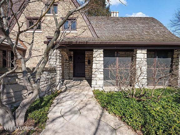 This Stone Cottage and Coach House is nestled on a quiet corner in East Winnetka, just steps from Centennial park beach and our wonderful Lake Michigan. Step inside this impeccably cared for home that conveys all the charm an English countryside home provides. Be inspired by its architecture and style, featuring a vaulted ceiling in the living room with Hewn Beams, 2 stories of leaded glass windows, complimented with French doors connecting indoor and outdoor living spaces. Enjoy a morning cup of coffee on the stone patio or a light dinner on your screened in porch, or walk over to the east side of the property to enjoy the sounds of nature and a water feature. The kitchen opens to a lovely breakfast room/den with a fireplace. The primary bedroom boasts a vaulted ceiling as well, with beautiful windows, trumped by a custom designed dressing room that leads to a spa bath. Two more bedrooms with updated bath, complete the second floor. The coach house is a destination, a bonus to the property that can be used as an art studio, home office, yoga room, complete with a two car garage. Full basement and laundry allows for added recreation and/or ample storage. Amazing location, walk to Lake, Park, New Trier High School, Greeley elementary and train!