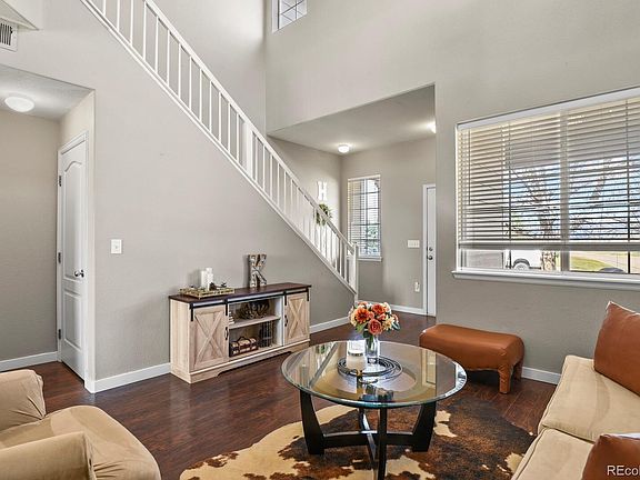Beautiful 3 bedroom, 3 bathroom house in the Sharpe Farms neighborhood. Vaulted ceilings upon entry allow for ample natural light. Family room connects to the open concept kitchen and living room. Beautiful hardwood floors throughout the dining room and kitchen, plus SS appliances and farmhouse sink within the kitchen. Check out the amazing double sided marble fireplace for quiet nights or sit outside on the back patio for entertaining nights with friends and family. Upstairs is the primary bedroom with a gorgeous eastern view, double sink en-suite and generously sized walk-in closet. Two additional bedrooms are also located upstairs as well as a full bath with a loft perfect for additional entertaining. New garage doors and exterior paint really makes this house stand out This neighborhood is just blocks from Thunder Valley K-8 school, Centennial Park and downtown Frederick with restaurants and shops and easy access to I-25. Don't miss the opportunity to own this lovely home!