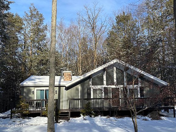 Tucked away in a small private community in the heart of the Poconos is this rustic and cozy 3 bed/2 bath recently remodeled chalet with loft. No expense was spared on the upgrades here! Mini-splits, high efficiency wood-burning fireplace insert, enormous 16'x49' deck with hot tub, new washer/dryer, new electrical panel...the list goes on. The low dues community offers central sewer, a 30-acre spring fed lake with beach, and playgrounds. The home is currently a thriving income-generating short-term rental property. Location is close to shopping, major highways, 2 hours to NYC, minutes from ski resorts Jack Frost and Big Boulder, and many other area attractions! Whether you're looking for a full-time residence, weekend getaway, or investment property, this one checks all the boxes!