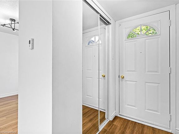 This townhome has seen renovations in the past 5 years including recent fresh paint, new ceiling fixtures, newer maple kitchen and counters. All black appliances including new laminate floors to the main and upper level including matching staircases. All new light fixtures on the main floors and upstairs bedrooms. Easy access to a private backyard deck and BBQ area just off the living room. Upstairs has a newly replaced vanity and sink and mirror in this 4 piece bathroom. 3 good sized bedrooms including primary. Basement is also finished with a cute rec room area, pot lights and all new vinyl plank flooring, good sized laundry and utility room combo with some updates in there as well including: upgraded 100 amp panel with breakers and ESA certified when replaced, all outlets were grounded and inspected when panel was changed over, included a washer and dryer, rough in bathroom, , owned water softener, and (water heater is rented). This unit is walking distance to local schools and parks. very close to public transit and 5 min drive to the 401. Come today to check it out.