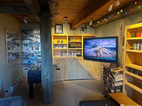 Skier's Dream Cabin on Gold Hill, Crystal Mountain. Rare opportunity to own an authentic ski-in/ski-out chalet that combines exposed original logs with modern craftsmanship - Sleeps 12. Open great room with wall of windows for majestic mountain and valley views, a roaring woodstove, spacious living room and kitchen with granite counters, stainless appliances and rustic dining table with benches. Upper primary with King, 2nd bedroom with Queen, bunk room with 4 Twins and 2 Queen sleeping lofts. Basement hot tub, sauna, wax room and 3/4 bath. Entry has 16 built-in cubbies, and covered porch with ski racks for a dozen pairs of skis and 6 cords of wood. Completely furnished, including one-of-a-kind LMC 1500 Snowcat. Chalet living at it's best!