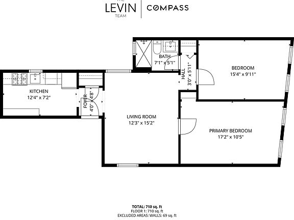 - Total interior livable area: 710 sqft