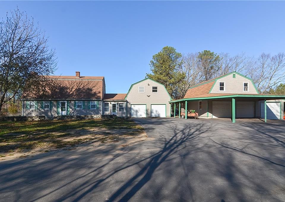 Welcome Home to 21+ acres of secluded and highly desirable land in beautiful Greene, including cleared land, a private pond, and over a 1/10 of a mile private paved driveway. This forever home sits nestled amongst its vast land and awaits its next owners to make it shine to its true potential. Built in 1980, the home boasts 4 large bedrooms and 2 full baths with the primary bedroom located on the first floor. You will additionally find on the first floor a mudroom, bonus office space, oversized eat in kitchen/dining area and large living room. Storage galore in the full basement and the loft above the main attached garage. Plus there is an additional 3 bay garage with an estimated 460 square feet of bonus space above with both heat and electric! That makes 5 garage spaces! And endless paved driveway parking! Just minutes from the CT border, wildlife and hiking trails, and Leyden Farm Vineyard and Winery, this home is a must see! The possibilities are endless!