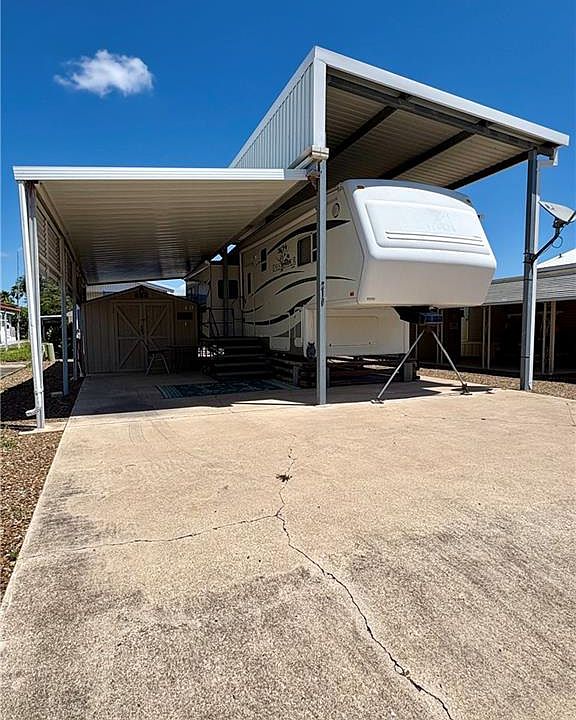 Wagon City North with all its perks. Ready to move in enjoy this completely furnished 1 bedroom, 1 bath, with living plus a dining area for two; fully equipped kitchen to cook/prep your meals, comes with spacious storage unit with washer, dryer, and refrigerator. Enjoy the cool breeze under the carport or take a refreshing swim in the community pool! Very well established 55 plus community with all the perks to enjoy, close proximity to stores and restaurants. Stop by and take a look!