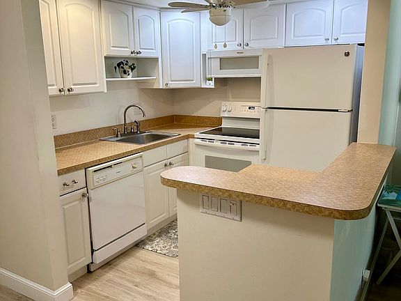 Beautifully updated, 1st floor, 1 BED condo, over 55 gated community with partial intracoastal views. Brand new flooring and baseboard 2024, A/C under 2 years, NEW water heater. NEW hurricane sliding door, updated electric panel 2022, appliances replaced, new fans, NEW bathroom vanity, mirror, lights, shower head and tub reglazed. Community just updated a new club house with gym, library, party room, auditorium, pickle ball courts, bocce ball. Has pool & 3 laundromats. Beautiful walkway along intracoastal, covered gazebo with grills, putting green, WALK to beach, restaurants, grocery, boat docks. All state and local inspections met. Sold furnished or unfurnished.