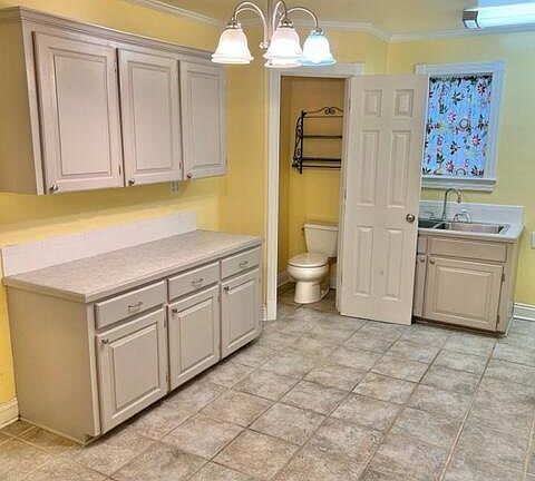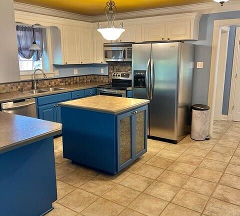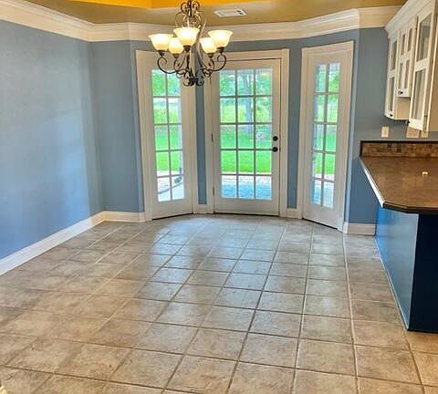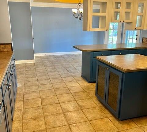 - Built-in Features, Crown Molding, Kitchen Island, Separate Shower, Varied Ceiling Heights, Walk-In Closet(s), Formica Counters