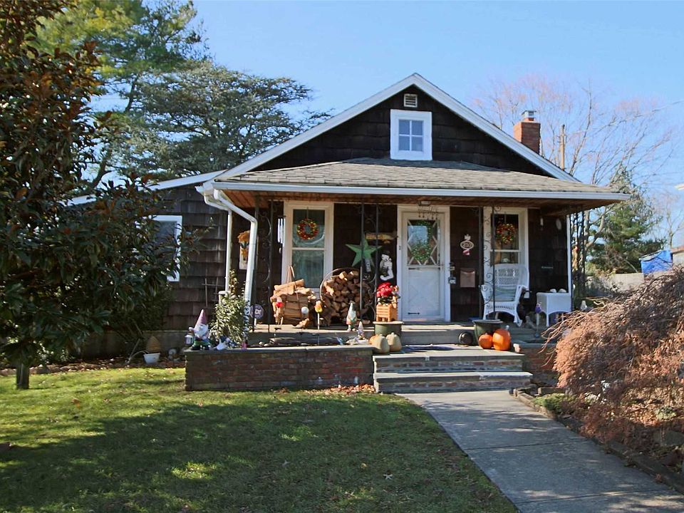 If you are looking for that country look you have found it. This charming ranch has beamed ceilings, wood floors, fireplace, rocking chair front porch, beautiful 4 season atrium with electric heat, large rear deck for great entertaining overlooking extra large lot (90x100) Relax in the updated bathroom with jacuzzi tub. Living room has wood burning fireplace eat in kitchen has wood burning stove. New roof, new appliances. Minutes from Manhattan, RR,malls and beaches. Do not miss out