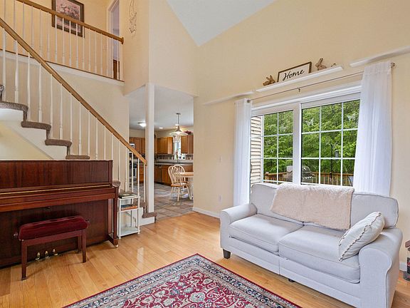Well maintained Hampstead home with central air conditioning offering a versatile layout across three levels. The main floor features vaulted ceilings in the living room, hardwood floors, large windows for natural light, and an open dining area connected to the kitchen with stainless steel appliances. A half bath with laundry and an additional room, ideal for an office space, media room or guest quarters, complete the main floor. Upstairs is a spacious primary suite that offers a walk-in closet, jetted tub, and separate shower, as well as an additional bedroom and separate full bathroom. The finished lower level adds a third bedroom, another full bath, and a bonus living space with walkout access, perfect for extended guests or a home gym. Enjoy outdoor space on the private deck, an open level back yard, new shed, and the convenience of an attached garage. Located on a quiet, well-kept lot with easy access to town amenities. Select photos have been virtually staged. Showings begin on Saturday May 31st with an OPEN HOUSE from 10-1.