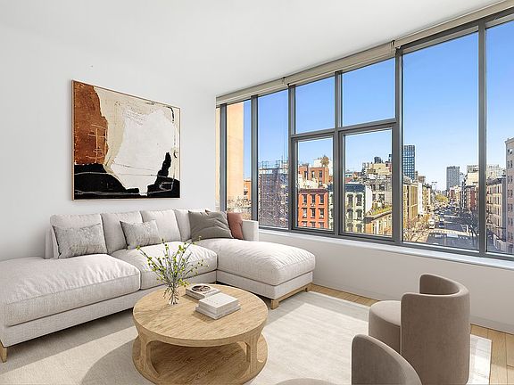 Perfectly situated at the nexus of SoHo and NoLita, this exceptional modern one-bedroom home boasts soaring 10’2” ceilings and 33 feet of unobstructed and protected eastern views. From the living room and bedroom, gaze out over Kenmare Street, Petrosino Square and enjoy vistas of the iconic Williamsburg Bridge.