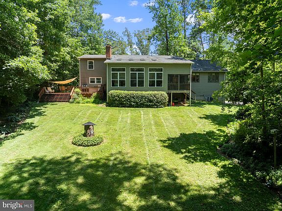 This stunning waterfront home in the gated community of Lake Caroline sits on 1.3 acres on a triple lot with 220 feet of shoreline and a boat dock. It features an open floor plan with vaulted ceilings and seven skylights throughout. You will love the abundance of natural light throughout! Custom kitchen includes granite countertops, stainless steel appliances, a double-door pantry, and a large island adjoining the great room with its four retractable skylights. From the great room step onto the screen porch or spacious deck which open to the luxuriously landscaped backyard. Easy-care perennial plantings throughout the property. The primary bedroom on main level includes full bath with custom shower and a walk-in closet. Second floor features a bedroom, full bath and a loft overlooking the great room. A major remodel in 2008 added a suite above the attached side-loaded two-car garage. The suite includes two bedrooms, a large sitting room, full bath, and is equipped with separate heating and AC. This serene home is a beautiful place to live, entertain and relax.