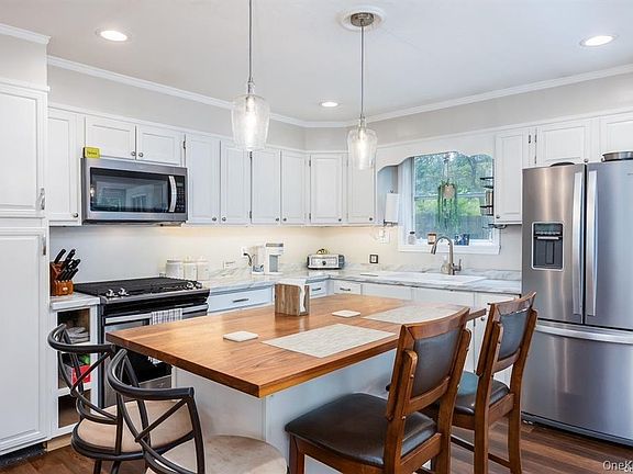 Welcome to this very private Cape Cod style home up on a hilltop overlooking Landing Ave located in desirable Smithtown village. This home features many updates including ductless mini splits for AC, appliances, bathroom, etc.. Oversized 2 car detached garage has updates and electric, full basement was updated, new driveway and retaining walls, upstairs primary bedroom has a private full bathroom with standup shower. Taxes are one of the lowest in the area,