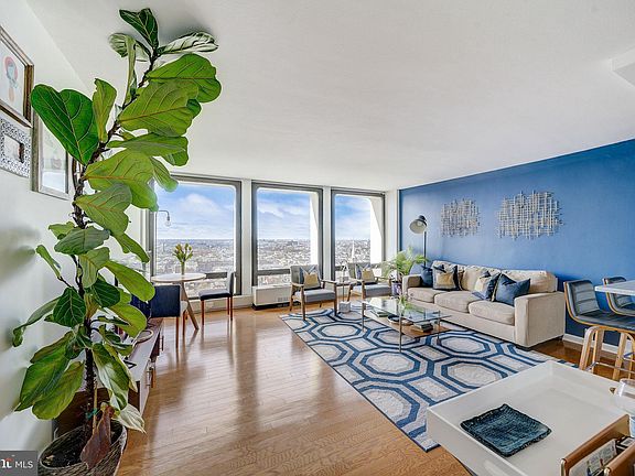Experience luxury living on the 21st floor of this updated West Tower home with unobstructed, breathtaking southern views of the city & Delaware River. This renovated condo has taken into account every detail for a thoughtful design of comfort and style. You will be captivated by the hardwood floors throughout and carrera marble showcased in the kitchen and bathroom and tons of natural light. Indulge in your kitchen complemented by sleek stainless steel appliances, gas oven, under cabinet lighting and ample storage. The primary bedroom exudes beautiful views, comfort, and organization with its ample size, and closet built-ins for your wardrobe essentials. Experience convenience and sophistication with a dedicated laundry area housing an Asko Washer and condenser dryer. You will enjoy hassle free living with the monthly condo fee covering all utilities including basic cable and 24 hour doorman for added security. Take advantage of the array of amenities including an outdoor pool oasis with picnic tables and grills, state of the art fitness center and the option for garage parking for a fee. This home is steps away from a market, dry cleaner, beauty salon Zahav, Ritz 5 theater, ACME, Independence Hall, Penn's Landing, Headhouse Square, and convenient to public transportation and major thoroughfares. Parking can be rented at the building if needed for $261 a month.