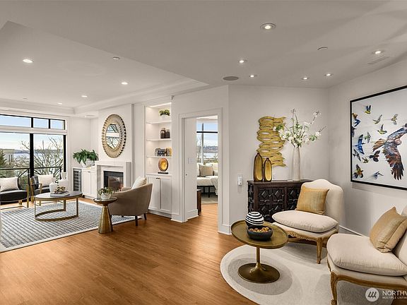 PREMIER LOCATION, CAPTIVATING VIEWS, LUXURY LIVING. Exquisite remodel in award-winning Tiara de Lago’s steel-and-concrete gem in Downtown Kirkland. This 2-bedroom/office home offers an open floor plan with expansive views of parks, lake, mountains & marina. The gourmet kitchen & rooms are masterpieces, featuring custom cabinetry, stunning countertops, premium appliances, luxury features & elegant fixtures throughout, built-ins & California Closets. Expansive windows envelope you in natural light & the stunning urban oasis. Enjoy executive quiet & step-free luxury, safety of keyed elevator, 2 oversized parking spaces & ample storage. Live steps from boutique shops, restaurants, amenities, lake & parks—Pacific Northwest living at its finest!