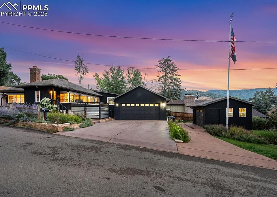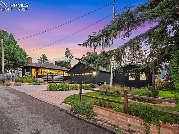 Beautifully remodeled Mountain Home with Views, Flat Double Lot & Prime Location in Manitou Springs Welcome to this beautifully remodeled mountain home nestled on a large flat lot with stunning mountain views—just minutes from downtown Manitou Springs and the Incline. This unique property offers the perfect blend of Manitou charm and modern updates in a serene, park-like setting. The landscaped lot features mature trees, including a large pear tree, a lighted flagpole, stamped & stained concrete driveways (south-facing for quick snow melt), and vibrant gardens supported by rich, imported topsoil—perfect for green thumbs and outdoor lovers. Enjoy a peaceful retreat while staying close to hiking, dining, and shopping in Manitou Springs. Notable features include: Newer exterior paint, Newer roof, stucco, windows, and sewer line, Two-car finished garage with slab floor, Separate garage/workshop with its own electrical panel, 4+ off-street parking spaces, Newer hot tub, and Central A/C. Inside, you'll find 5" birch plank hardwood floors, a cozy gas stone fireplace, and a light-filled living and dining area with beamed ceilings and a wall of windows that frame the mountains. The spacious kitchen includes slab granite countertops, hardwood flooring, newer appliances, a pantry, peninsula with bar seating, and ample storage. Step out to the covered patio and discover your private backyard oasis—complete with aspen and apple trees, a pond with waterfall, original rock grill, multiple sitting areas, and automatic irrigation systems. The primary bedroom features a large closet and a vanity nook with views. The remodeled bathroom includes a furniture-style vanity, granite flooring, custom tile, and a skylight. Potential 2nd bath. The walkout basement offers a flexible non-conforming bedroom—could also be great as a media room or recreation room. With great views, a huge flat yard, multiple garages/workshop, and an unbeatable location, this home is Colorado living at its best!