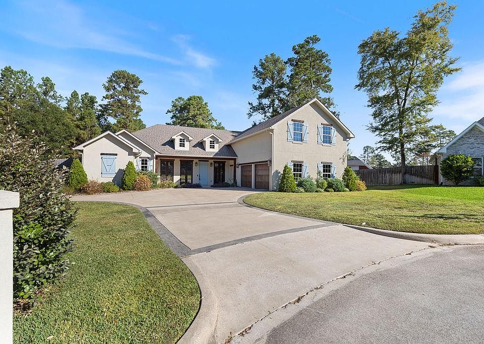 Nestled on a quiet cul-de-sac in the Crown Colony subdivision, this stunning French country-style home offers timeless elegance and modern comfort. With 3 bedrooms, 3.5 baths, and a versatile upstairs flex space, this home is designed to meet all your needs. Step into the light-filled open-concept living space, featuring a showpiece fireplace and a beautiful feature wall. The kitchen is both functional and stylish, boasting an eat-in bar, a separate prep island with a china cabinet front. The spacious master suite is a private retreat with its own door to the back patio, perfect for quiet mornings or evenings. The large backyard is an entertainer's dream, complete with a gas fire pit for cozy gatherings. Upstairs, the flex space with its own bathroom can easily transform into a playroom, office, 4th bedroom, or whatever suits your lifestyle. Located in move-in ready condition, this home combines sophistication with practicality, all within the amenities of Crown Colony.